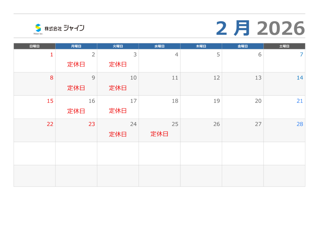 営業日のご案内 投稿日 2026年1月6日 更新日 2026年1月17日 著者 株式会社シャイン カテゴリー お知らせ 営業時間は9:00~19:00です。 LINEまたはメールでのお問合せは24時間受付いたしますが、営業時間中の対応になります。